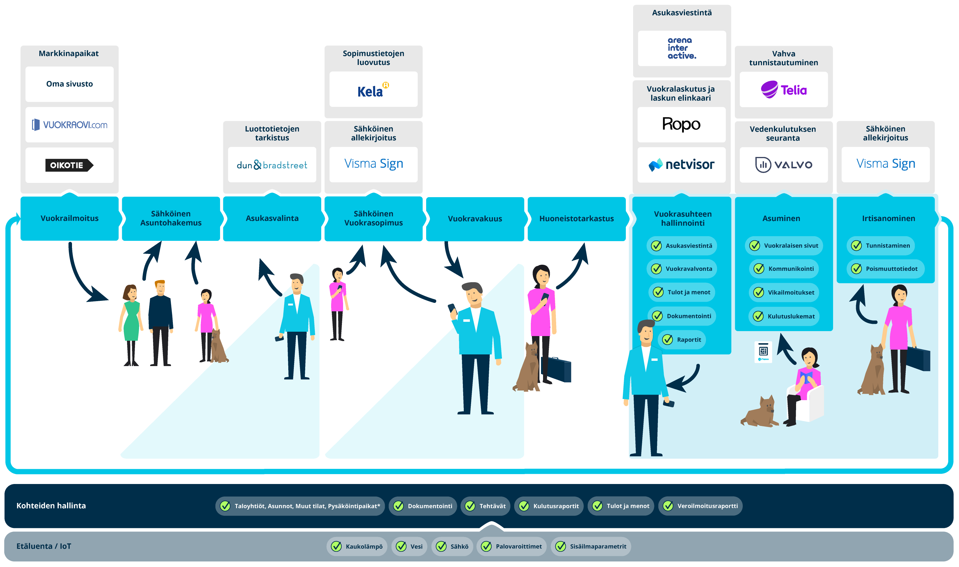 Monipuolinen ratkaisu asuntojen vuokraustoiminnan hallintaan