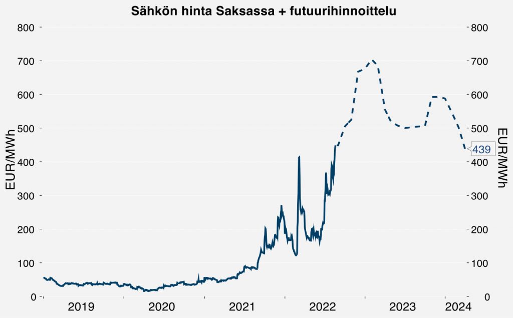 Mikäli euroalue vajoaa taantumaan ostovoiman ja globaalin talouden heiketessä, tämä tulee helpottamaan inflaatiopainetta ja sitä myöden mahdollista koronnostotahtia. Jotta asia ei olisi niin yksinkertainen, keskuspankin kannalta harmaita hiuksia aiheuttaa edelleen kohoavat energian hinnat, mitkä lisäävät inflaatiopainetta. Energian hintojen on määrä pysyä koholla ensi talvi, mutta jos katsoo esimerkiksi Saksan sähkön futuurihintoja, niin paine jatkuu myös tämän jälkeen pari seuraavaa vuotta. Kuinka paljon keskuspankki sitten pystyy vaikuttamaan inflaatioon, joka tulee energian hinnoista? Ei paljoakaan, keskuspankin rahapolitiikka vaikuttaa talouden kysyntään – ei tarjontaan. Näin ollen markkinoilla on suuri epävarmuus missä korot ovat tulevina vuosina – varmaa on, että nyt eletään poikkeuksellisen epävarmoja aikoja.