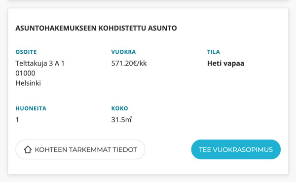 3. Vuokrasopimuksen luonti asuntohakemuksesta onnistuu napin painalluksella