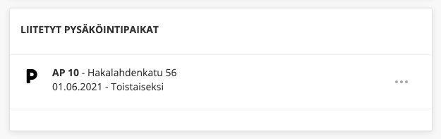 - Pysäköintipaikan liittäminen olemassaoleviin sopimuksiin myös mahdollista