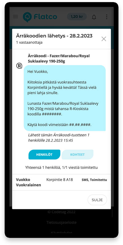 - Ärräkoodien lähetys vuokralaisviestinnässä